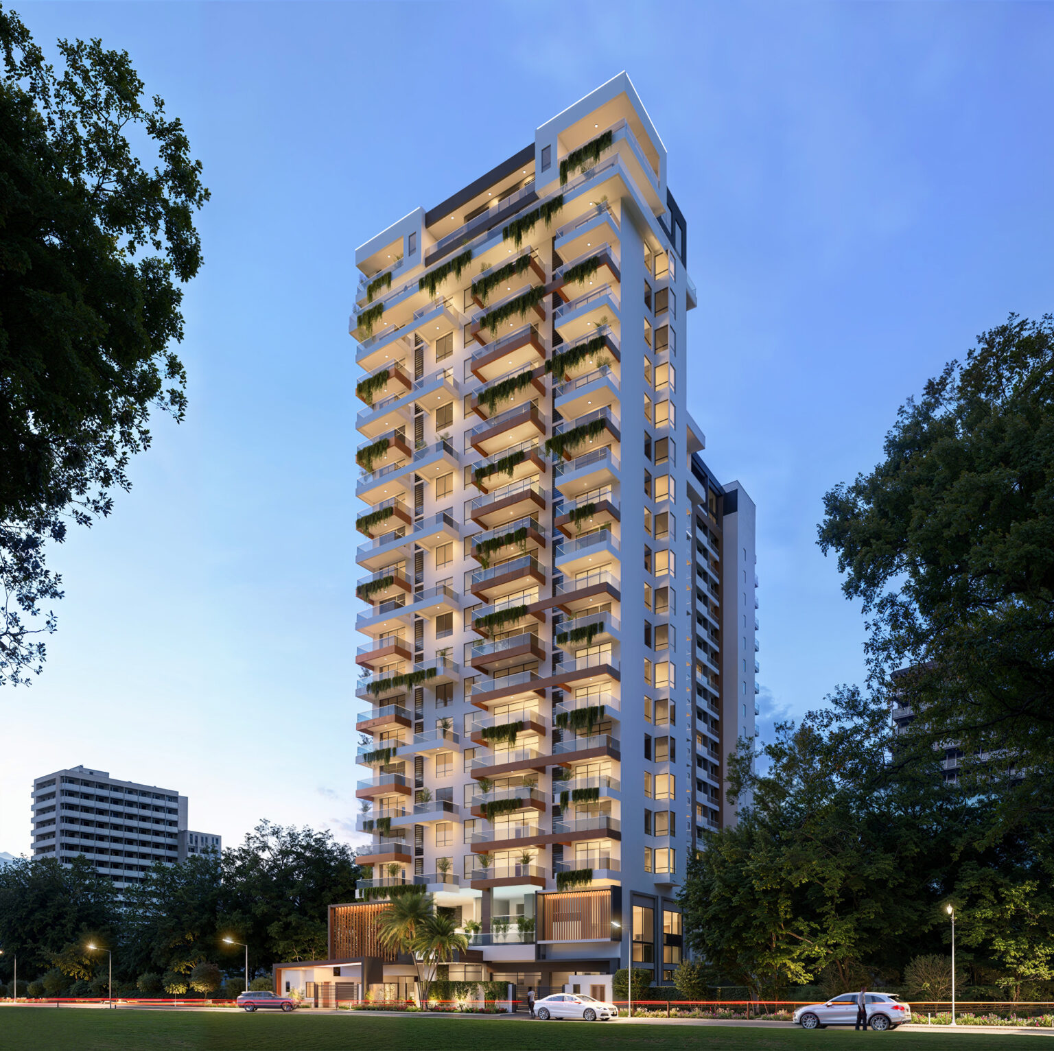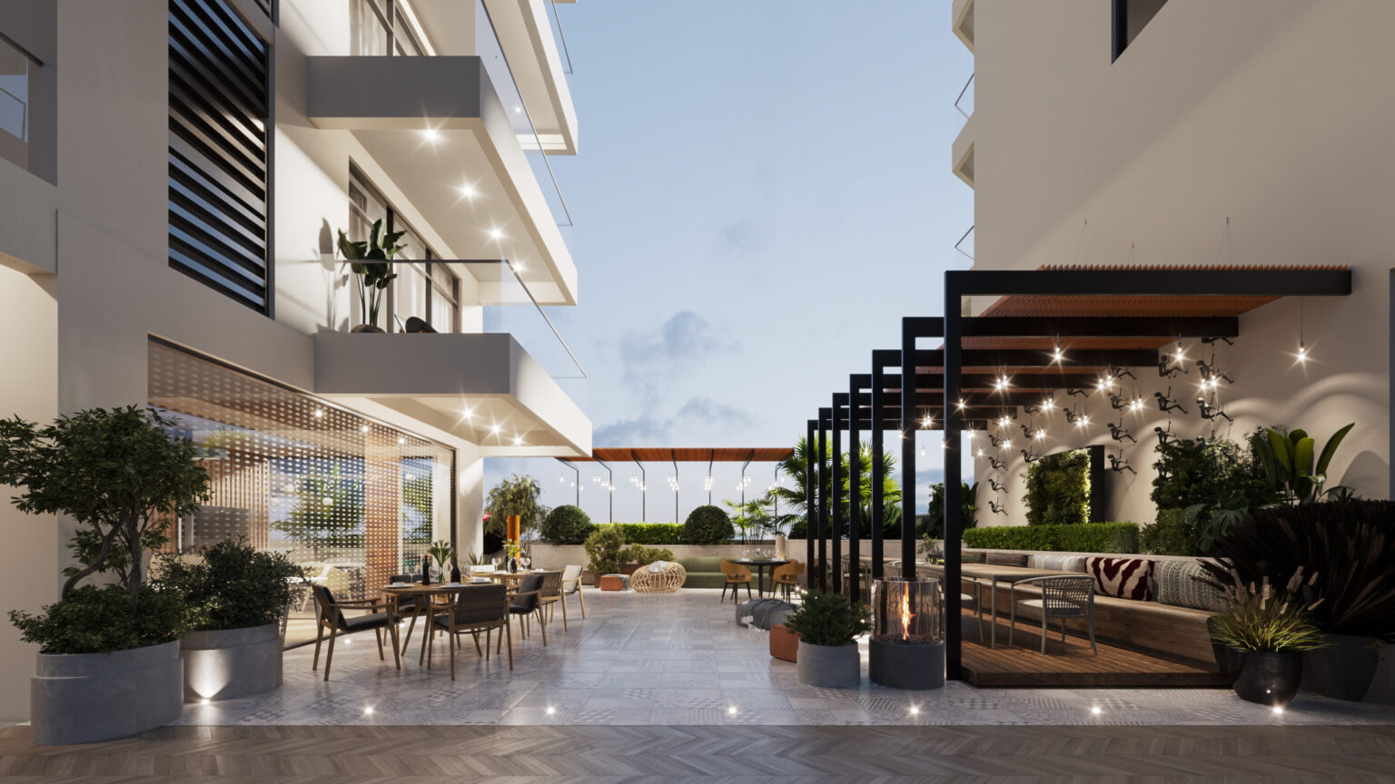 • Rooftop social hall for residents’ events