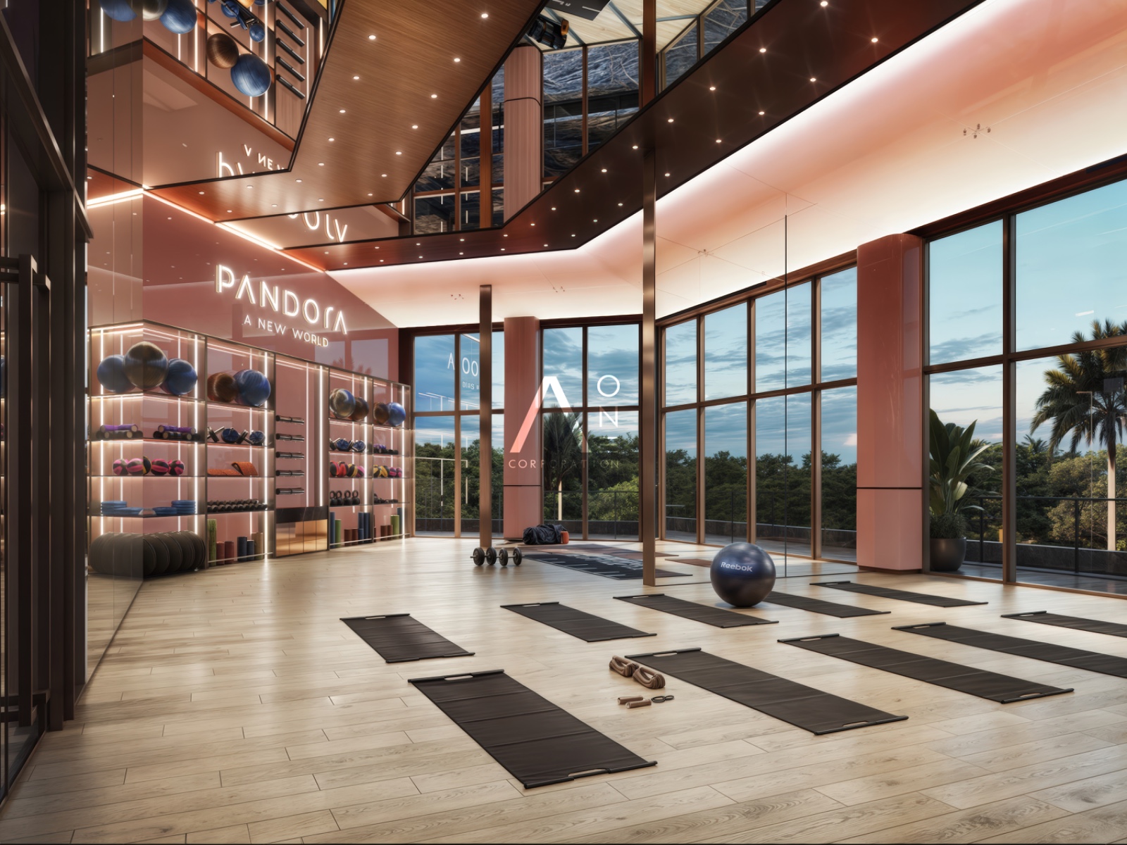 Sauna, yoga room, and reading lounge